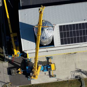 In november 2022 hebben we de laatste 2 opslagtanks geplaats van de 1e fase. Deze 1e fase bestaat uit 12 stuks RVS opslagtanks ad 1350m3.